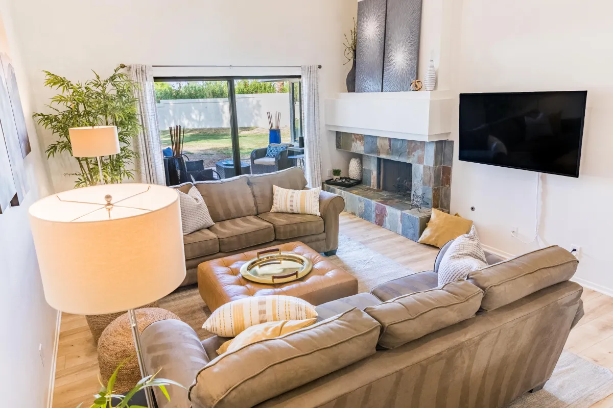 Desert Sky is fully furnished with every upgrade you could ask for, including 55” 4K smart HDTV in the living room, 32” 4K smart HDTV in every bedroom, high speed WiFi, luxury furnishings & mattresses, Keurig Coffee maker, completely stocked kitchen for cooking, pool floats, and more.