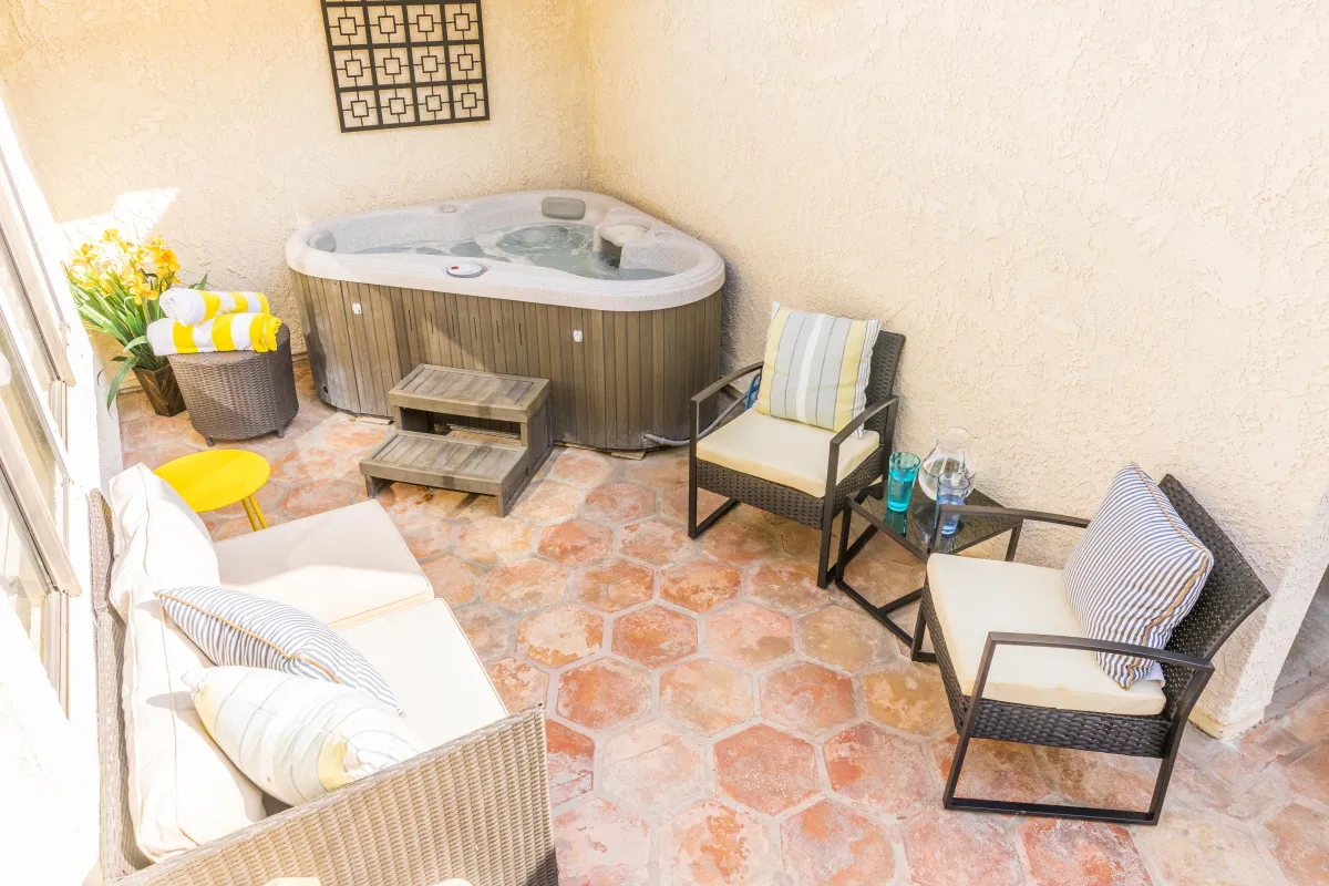 The patio is where many nights will be spent relaxing on the sofa. Kick back and watch the stars float by with your beverage of choice in hand! The front courtyard is a great place to spend the evening soaking your cares away in the private hot tub under the desert sky.